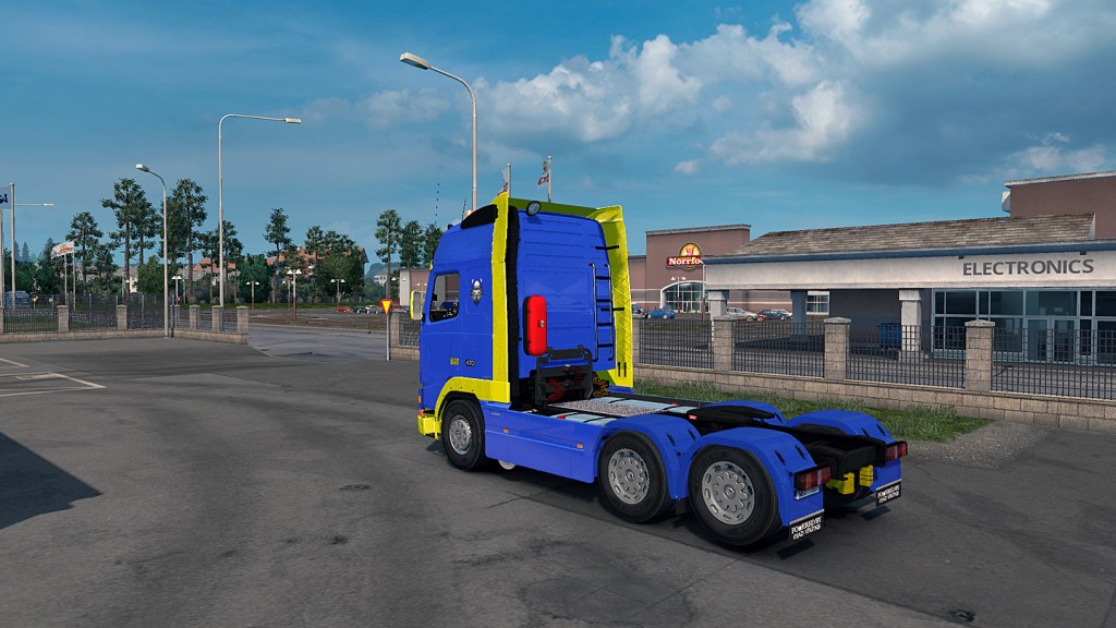 Shawn hatte noch zwei Tage Urlaub und deshalb hatte ich, nachdem alle raus waren, selbst noch eine Mappe mit Frachtpapieren und den Schlüssel für den Scania in der Hand. Ich ließ mich hier im Gewerbegebiet bei Morrisons mit Konserven beladen. Hätte ich gewusst, was Shawn mit dem Truck vorhatte, dann hätte ich mir vorher Aktien bei den Herstellern gelber LED gekauft.