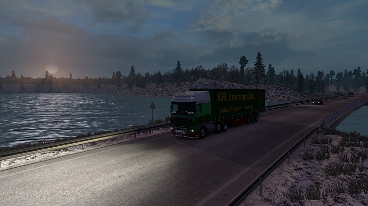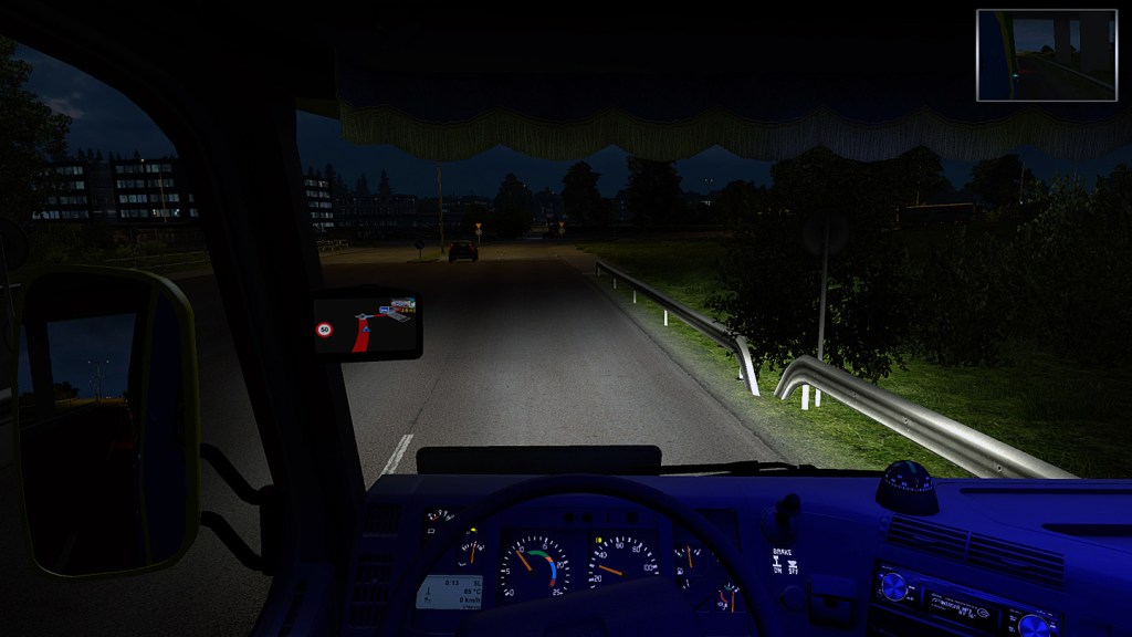 Wir machten 45 Minuten Pause in einem Gewerbegebiet direkt an der Autobahnabfahrt in Kopenhagen und schafften dann im letzten Licht noch die Öresundquerung. Gegen 21 Uhr ging die Sonne unter. Kurz nach Mitternacht und dicht an 9 Stunden Lenkzeit rollten wir nach Huskvarna rein. Das blaue Innenlicht war eine deutliche Verbesserung gegenüber dem gelben. Aber so dunkel wie heute Nacht würde es für den Rest der Tour sowieso nicht mehr werden.