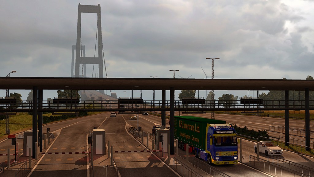 Das Schiff legte bekanntlich erst um 15:30 an, also war der Tag schon so gut wie gelaufen. Hinter Esbjerg nahm Timo die Primärroute 24 Richtung Apenrade und wir die E20 nach Kopenhagen. Ich hatte noch Dominiks Transponder für die Brücken in der Zugmaschine. Dima musste mit Karte zahlen.