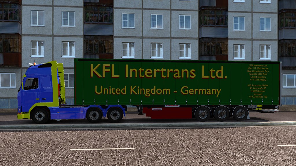 „Wie kommt es eigentlich, dass Du als Brite so eine schwedisch lackierte Zugmaschine hast? Schweden-Fan?“ „Nein. Erst mal bin ich Deutscher und nur nach Großbritannien ausgewandert. Die Zugmaschine habe ich von einem halb schwedischen Freund gekauft und will sie zusammen mit meinem Mann ein bisschen umgestalten, wenn wir mal zu Treffen fahren oder ich damit Urlaubsvertretung mache. Aber ich habe den erst vor 2 Wochen in Huskvarna abgeholt und in den paar Tagen zu Hause gerade mal mit glühend heißer Nadel verzollt und auf meine Firma zugelassen bekommen.“