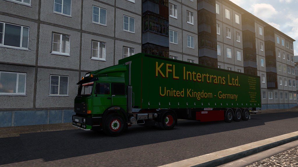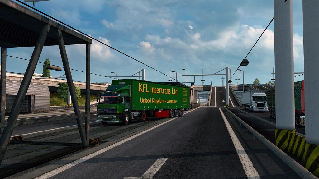 Für den Auftrag wollte ich den letzten in grün verbliebenen Fruehauf-Trailer nehmen. Nicht nur weil der so schön zum Truck passte, sondern auch weil er die angebaute Laderampe hatte. Wahrscheinlich würde der Trailer nicht bis 2020 bleiben, was eigentlich normal wäre. Es war einer, den die kränkelnde Fruehauf SAS noch vor der Wielton-Übernahme gebaut hatte und die Verarbeitungsqualität hatte unter der klammen Kasse deutlich gelitten. Rostansatz am Rahmen würde irgendwann durch die MOT fallen. Und auch wenn er Profi war und seine Reparaturen Herstellerqualität hatten, alleine dass Ben schon mehrfach mit Crimpzange oder Lötkolben über die Elektrik herfallen musste, war auch so ein Zeichen.