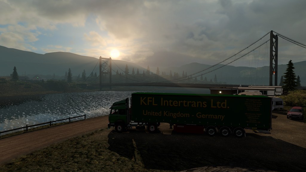 Die Pause machte ich dann auf einem Rastplatz am Perimeter und fuhr weiter auf die M1, die M6 und schließlich machte ich in Staffordshire noch eine Pause, um mit einem 10er nach Hause zu kommen. Die Abladestelle war Westbridge Furniture, eine Möbelfrabrik knapp 500 Yards von unserer Spedition. Entsprechend ließ ich den Truck stehen und ging rüber ins Büro, wo ich mich eine halbe Stunde lang auf den neuesten Stand brachte. Dann holte ich den Truck und die gestempelten Papiere ab und machte Feierabend.