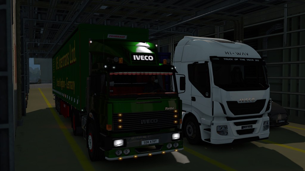 Dabei fielen mir zwei Dinge auf. Verglichen zu ähnlichen Paarungen wie Mercedes NG und New Actros, MAN F9 und TGX oder Volvo F10 und FH 2013 musste sich der Iveco Turbo hinter seinem Nachkommen nicht verstecken. Okay, er war niedriger, aber kaum schmaler und wirkte auch nicht so zerbrechlich gegenüber einem modernen Fahrzeug wie insbesondere der NG neben einem New Actros oder der F9 neben einem TGX.